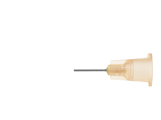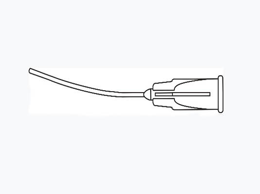 Шрифт 1,1 x 20 мм (19G x 3/4 дюйма), прикрепленный к гибкой канюле 0,60 x 12 мм (23G x 1/2 дюйма)
