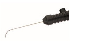 Лазерное волокно, выдвигающееся из металлической оболочки "вниз".