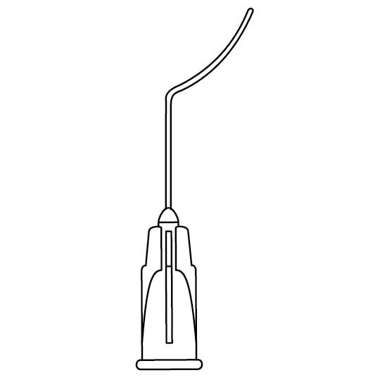 Изогнута под углом 45° на удалении 7 мм от конечной части. Также используется для ирригации при рефракционной хирургии.
