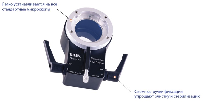 Реинвертор ROLS представляет собой технически продвинутую систему, которая обеспечивает перевернутое изображение при проведении витреоретинальных процедур. Использование в комбинации с линзами Volk для непрямой офтальмоскопии высокого увеличения и широкопольными витректомическими линзами обеспечивает правильно расположенные изображения сетчатки высокого разрешения.